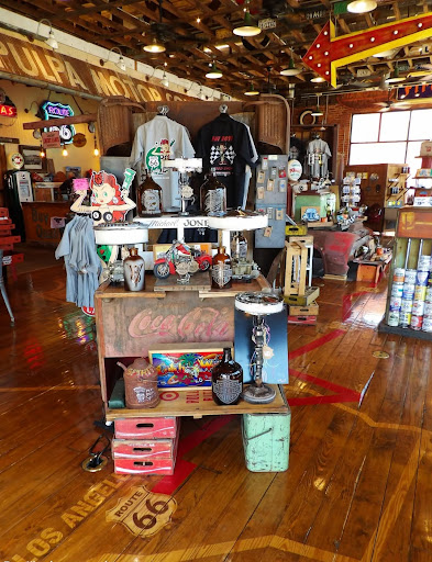 Gasoline Alley Classics is another must stop shop on Route 66. Soon as you walk in, the owner Michael greets you with a hello a smile and a friendly handshake. Shows you around the building and tells you about the amazing history of the place. Model T's, vintage gas pumps and signs. Lots of cool stuff hanging from the ceiling so don't forget to look up. It may sound crazy but the bathrooms were fantastic. You will be surprised when that door opens. The doors themselves are wicked cool. Got to love those barn doors. The passion that Michael has and put into this place made it a very awesome experience. This is one shop you can visit over and over and it feels like you're hanging with a friend. Can't wait to be back for another visit. Next time, I'll bring my check book and I just might buy one of those Model T's. Thank you for a great day and for your kindness Mr. Jones....