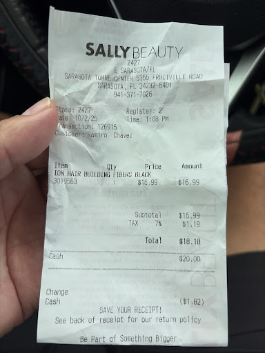 Read moreI had scheduled a pick-up order for the Devil’s Ivy Good Dye Young hair dye since it was out of stock at their tamiami trail location, the girls at tamiami called this store and let me know they had this hair dye in stock. After some time passed after ordering, I went ahead and called the store and explained that my boyfriend would pick it up since the store was far from the house and close to his job. Despite me explaining that he had my wallet with the card attached to the order and state ID, and email confirmation, I was told he would just need to say my phone number to them. He gets off early, goes to the sally’s to surprise me that he got it earlier than expected, and they give him trouble. Despite having the email confirmation and state ID, they gave him a hassle and basically treated him like a criminal as if he was going to steal my order. Really unprofessional since I had called just 2 hours before, letting the girl on the phone know it would be him picking it up, not me.