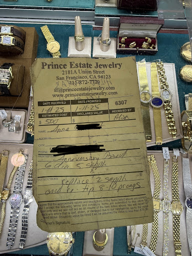 While I was at the store, the saleswoman Sarah and another older gentlemen were very aggressive on selling me diamond earring studs. I tried a few on, but was not there to purchase diamonds. They kept pushing, bargaining prices. I noticed that a few of the diamonds were different sizes from their other counterpart and did not trust their quality or craftsmanship. I left the store with my husband to our car in the parking lot a block from the store. The older man from the store ran after me trying to make a deal, saying they would sell me the diamond earrings at a discount and give me the ring repair complimentary for $4200. He even wrote in the back of my service ticket for the ring and said he would honor the price when I returned to pick up the ring. My husband and I had very bad tastes in our mouths from this experience. What high end jeweler makes deals selling diamonds in a parking lot? Why is he chasing me down the street? At this point, I felt regretful leaving my ring with them.