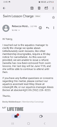 Read moreI hardly ever write reviews, but cancelling is a hassle and I agree with a lot of the other comments by other people!!! Was a member for over 4 years. I began in high school and through some college. The facility is great, but honestly in comparison to some other LifeTime locations, improvements could be made to modernize. Workout floor is often too busy to be able to comfortably workout individually. Group Fitness classes take up space on the main floor. Consider expansion if you lack enough classrooms? For what you are paying, you should expect premium. Speaking of price, obviously I valued the location enough to stay a loyal member for that long. When I went to cancel, it was the biggest hassle. Some context: they allow college students to keep their membership for $10 a month during the school year. It's dumb because you should really only have to pay for the months you're going to use it, but whatever! (i.e. a lot of students go to school far away and don't have the luxury of coming back often! I wish this could be considered!) I was only home for like two weeks over winter breaks but it would have been more to completely cancel and then pay the rejoining fee rather than $10 every month. During the summer they make you pay full price which is understandable since you're there regularly. Anyways, back to canceling - so I was back for a short span during a month in the spring, and for ONE thing, there's a limit to how much you can attend on that $10 plan. I was pressured into paying a "daily fee" on top of that for the rest of the month. I even stated that I was actually wanting to cancel after the month because I found myself not being back enough to use it going forward, but that still happened. After that month, I wanted to cancel but I already moved back so I couldn't do it in store. Through emailing I thought I was good to go, but turns out I've been getting charged and will need to write a letter to fully cancel. I get that it's a corporate business but seriously listen to what your customers needs are. Moving is nothing I can change. School is nothing I can change. I'm coming to you for a service and it shouldn't be a hassle to get it, pause it, or cancel it. In hindsight, I spent WAY too much money for what I got out of it. All those extra $10 months over two years, the daily fee mishap, and in high school I played a sport so I inquired to suspend my account for the 3 months the season was on, but told I would have to pay the regular monthly price (At least $60 plus tax, as the student / "under 26" price - ridiculous in my opinion) Wish I would have joined a different gym in the first place. As a single user, it's not like I have a huge draw to use the pool and all the other random things there that add to the cost for everyone. Kinda sucks for people like me that those are rolled into the overall cost individually. And like someone else reviewed, be warned, when you join there's a whole sales pitch during your complimentary onboarding as a new member. Obviously, I have just written about the cons, but I was a generally happy member for years. Complimentary yoga classes are enjoyable, so is the pool, steamroom, and jacuzzi. New touchscreen machines are nice. Just be cognizant of what the sales environment is like there. Quite...