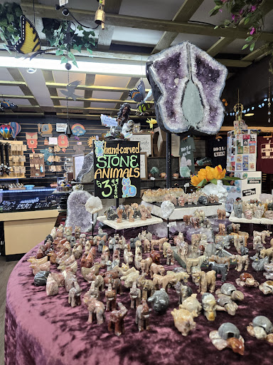 They’ve got stone turtles, large amethyst geodes, and windchime-esque ceiling decorations.