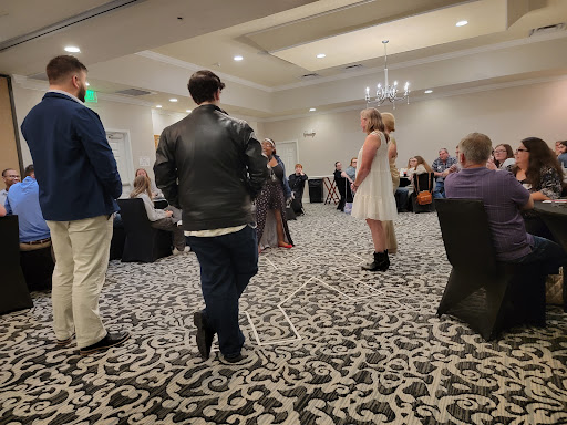 Read moreWe had a group of 5 couples buy Groupon deal for the Savannah show. I asked ahead and found of it's 10 people per table so I rounded up enough friends to make a table full. We all thoroughly enjoyed the show. It was engaging and pretty intense to figure out and put all the clues together. I had expected dinner to be acceptable and the focus be the show but we all loved the food. It was exceptional. Salmon was cooked perfectly, rice was fluffy and moist, and veggies were tasty and not overdone. Also, they plated the food nicely with a little decorative flair and it felt high end. Dessert was scrumptious too. We enjoyed mingling with other guests here and there trying to see who was "suspicious". I'd definitely recommend this as a fun night out for friends or family. With a party of 2 you could have a nice time but I think having a a small group of friends took it to the next level of fun. We will be planning to do this again. The Holiday Inn downtown was nice location. We found free parking nearby. The ballroom where it was held was nice and comfy and the staff were great. The only thing that could improve was in occasion the noise level of tables talking while actors were performing was annoying. I had to listen hard so as not to miss a clue. This, however, was just a minor complaint and I'd give Dinner Detective 5 stars and can't...
