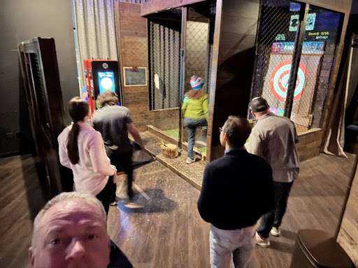 I gotta say I’m not a fan of this place. The throwing lanes and the equipment all seemed unkept. I think the owner might be Ron Popeil. You know “Set it and forget it”. If you look at the pictures online It looks like there was turf on the floor. The floor was worn through so badly. When we were there last night that the concrete was exposed and bits of wood were lying everywhere. My brother who has been to other throwing facilities, said that one of the places that he frequent has rubber pellets on the floor, so the axes aren’t hitting metal on concrete. The only staff member that was working there was helpful and nice. He helped us get started and even give us some throwing advice. I was a little surprised that I couldn’t buy a beer at this place. I suppose it’s not a terrible idea not mixing alcohol with throwing weapons. But I wanted a beer while I was doing...