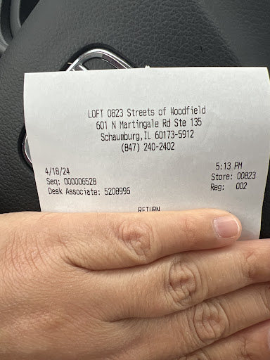 Read moreToday 5/4/22 I went to this location Street of Woodfield Loft because it was on my way. As I came inside I was in a mission looking for something I found online. So I was looking for any employee that can help me. Unfortunately no one even greeted me, there was a woman walking around putting clothes in the clothing rack so I assumed she works there. So I came to her for help, she was trying to avoid me and had a bad attitude and just pointed me to where I can maybe find what I’m looking for. So I came up to her again and told her that I can’t find it, her answer Of course, is “ if it’s not there then we “Don’t” have it! Just like that with an attitude. So I went to the girl in the register hoping she can help me. I complaint to her about the attitude lady she said, she is the on duty manager. The register lady was not a help either, but she was at least able to check out my online order. I ask for both the higher up Manager name is Bobbie and “attitude” Lady’s name is SALLY! So they will be hearing from me when I speak to the higher up manager and if this is not resolve I will speak to their Corporate. Take Note this Location Loft Street of Woodfield has the worst customer service I’ve ever experienced!...