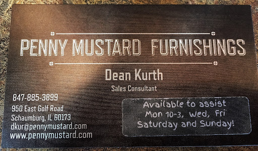 Read moreA week ago I visited Penny Mustard furnishing after my husband and I spent a full Saturday going to several furniture stores to purchase a new leather sofa. The day that we went we were unsuccessful at purchasing which lead me to Penny Mustard Furnishing in Schaumburg the following day. Although we purchased from a competitor in the area I wanted to briefly make note of the professionalism and impeccable customer service I received from Kortilious - a Penny Mustard Sales Consultant at the Schaumburg location.