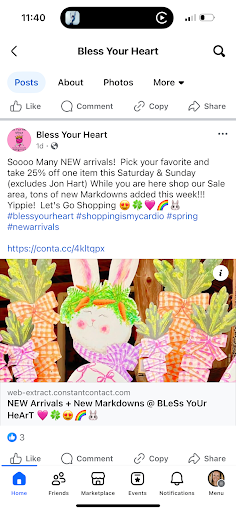 Read moreI’ve loved bless your heart for many years but after my last experience I’m not sure I’ll return. I had to ask for a fitting room when there was two girls at the cash wrap, one was checking out another customer but the other sales associate was hiding in the back. She saw me standing there with two of the same sweaters but just looked away. I decided to purchase the sweater which was with the sale items. Bless your heart advertised 25% off one item on social media only noting that Jon hart was excluded. When I went to check out I asked about the 25% off and she said “oh we can’t do that, it just like won’t let us” and I explained that that wasn’t noted online and there are times that they do sale on sale. I asked if she was sure and she said yes, and so did the other girl at the counter. I felt that their post very misleading. I also mentioned it to them on instagram, they saw it but I received no response. Extremely disappointing considering the sweater was close to $80. Poor customer service and false/misleading social media...