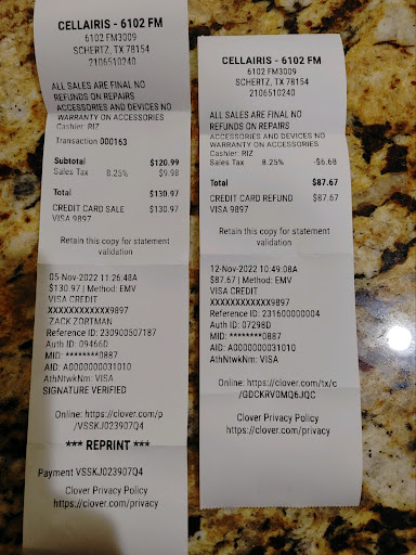 Read moreVery friendly, Richie extremely helpful. Unfortunately, I think my phone was the first one of its kind that they had ever repaired. He had problems reconnecting the battery with the new screen, and almost didn't put a piece in for another connection. When he couldn't get it to work at first, Charlie, the store manager began to say that I needed a new $99 battery. Long story short, Richie was able to get the connection to work and put the phone back together--but there were a couple of pieces he didn't know what to do with, so he just stuck them into the spaces of the new screen without cementing them or anything. Due to this, one of the pieces acted as a pry bar and fractured the glass around it. I took some super glue and glued the two pieces in place, but went to show Charlie what had happened. He began to tell me that it wasn't under warranty. I visited the shop a few weeks later on another issue, a different sales person who called Charlie who said I needed a $99 battery. I got the phone working well enough to go on vacation. While on vacation, my phone started glitching, going on and off. Because my wife's phone suffered liquid immersion on this trip, I had to get my phone working, so I took it to a repair shop -but not Cellairis because I didn't want to deal with them again. This repair shop found that the battery connection had been broken and that there was a piece missing that actually held the connection securely. They couldn't believe that the two pieces I super glued hadn't been secured when Cellairis made the repairs. There is also a small round hole that you can see an electrical device-the repair shop was surprised that Cellairis hadn't put the original round piece in the new screen's hole to cover it. I won't be able to get my money back for the repairs that I had done, but my phone isn't glitching anymore. This store (Walmart Cellairis on FM 3009) is probably great for accessories and most common repairs...but make sure you understand the warranty and shop around for not only trained repair techs but certified repairs techs as well. There is...