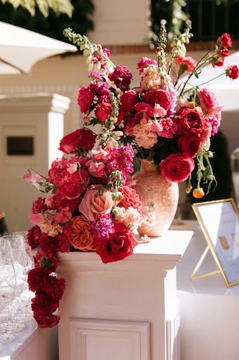 As a photographer: Her attention to detail and design aesthetic is amazing. The way she arranges the textures and colors in her floral installations are always so thoughtfully placed and it photographs beautifully. It's the little details like the dip in the left side of the arch where the bride is standing that frames the couple perfectly due to their height difference. Particularly Autumn's ability to use bold colors in elegant designs is inspiring as a photographer. I love photographing her designs.