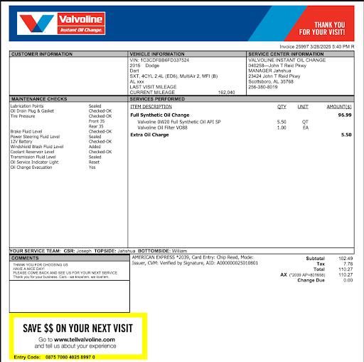 Follow Up: I had high hopes for Valvoline Instant Oil Change in Scottsboro, AL after a disappointing first visit where an employee spent my entire visit complaining about being hungover from a night of heavy drinking. Unfortunately, this second experience was just as frustrating. I waited in line for 40 minutes with only one car being serviced and one car ahead of me—without any movement. The car in front of me hadn’t even been pulled in yet! I ended up leaving without service because I had to get back to work. There’s nothing "instant" about this place. To top it off, their prices are outrageous—well over $100 unless you hunt down an online coupon. I’d rather take my car to the dealership next door for $85, where they’ll even pick up and drop off my vehicle, saving me the hassle of waiting. I won’t...