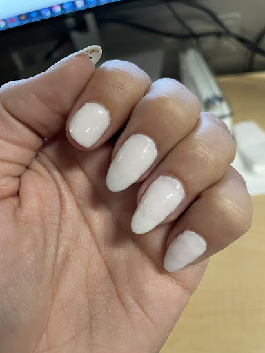 First visit: The nail tech was over 20 minutes late and no one checked on me or informed me of the delay. She was so frazzled from running behind that she did a very subpar job on my gel overlay. It was uneven, thick, and none of my nails were shaped the same.