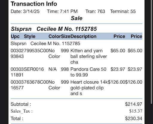 Read moreIf you came here check your receipt if you had a salesperson name Cecilee M. Came in to look at some charms and she ended up “helping” us had an attitude but it was whatever. I ended up getting 3 charms and before I went to pay for it I had looked at a different casing so she was holding onto them for me. When I went back to tell her that I’ll just take those 3 she told me the price was $230 and after I paid she started telling me about pandora care that it comes with 1 year of replacement or whatever, I asked her if that is for every single one of the ones I had previously purchased because this is the first time I’m hearing of this. I’m thinking it’s included in every purchase. She also never asked me if I wanted a printed receipt or emailed receipt, she automatically just emailed it to me. I have quite a lot of charms and every pandora store I go to usually ask. So after I left the store I checked my email and waited for my receipt and there I see that she added on pandora care. I came back in to ask her about it and she’s telling me “yeah that’s what I was telling you about” yeah after the fact you added it on without telling me and charged me for it. She probably make commission on these pandora care and be scamming customers to get her commissions. CHECK YOUR RECEIPT IF YOU...