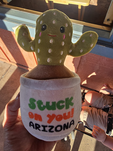 Appalled by the behavior of an elderly employer or (given her attention to my family's whereabouts) possible owner. Painting the picture, let me just say that I'm a professional who was semi-casualy dressed. I entered the store with my grandson in a stroller who was immediately drawn to the stupid cactus stuffy you see posted. Since he's leaving back home in a few days, I decided it would be a cute little souvenir to remember his visit at Nana's. As I'm wandering the store with my daughter and other grandchildren, an elderly woman walked up and snatched the toy from him and scolded him for putting it in his mouth. Upon seeing my stunned face, she said, "Unless you are buying it," to which I assured her I was. She then proceeded to follow me all over the store and when I handed it off to my daughter getting in line (who was otherwise unaware at this point) she became defensive feeling as though she was being stalked for shoplifting as the woman was literally over her shoulder in line. When I told her what it was about, we put all other items back.... and were it not for the baby's attachment... went ahead and bought this $12 item available all over town. My family and my numerous visitors throughout the year will be avoiding this place...