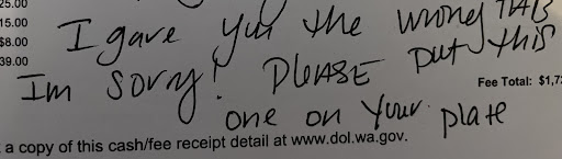 I have a vehicle from out of state that was gifted to me by my father-in-law and I needed to get it titled and registered here in Washington. Called Ballard Licensing and explained about the vehicle, emphasized that it is registered in Oregon and asked what I needed to bring with me to get it titled in Washington. The lady (I won't reveal her name) said "You just need the title and your driver's license. I said "Really? That seems too easy. I thought I had to have a bill of sale for an out of state vehicle." She said "No. You just need your title and driver's license." I actually had a bill of sale but it had gotten wet in my backpack during a rain and the ink was smeared. I knew I could get another one from my father-in-law but it would take several days with the mail from Oregon. Since I was told I didn't need the bill of sale I thought that was great as I wouldn't have to bother him for another one.