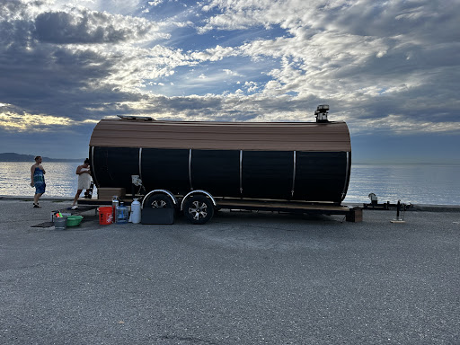 The mobile sauna itself is amazing—perfectly designed (front viewing window), and clean. After a session, I feel like all the stress melts away. Plus, the setting at Alki with the beach right there adds an extra layer of relaxation.
