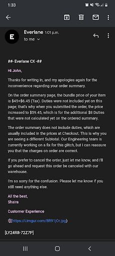 Read moreEverlane is hands down one of my favorite brands. I have been to this location before but yesterday’s experience left a really bad taste in my mouth. The young woman who rung me up was polite and engaging with the customer in front of me but did not greet me and seemed merely irritated at my presence. I also got home and looked at my receipt to find out that she did not apply the 25% discount for the Supima cotton rib tanks advertised by the register (which is why I added last minute). Unlikely to make the drive from south Seattle for that experience and will likely stick to...