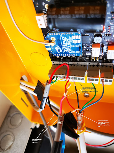 After TFL left, I decided to take a closer look by myself. I climbed up and noticed a red and black wire were connected together to a terminal marked as negative. Feeling confused, I called Element Locksmith, the original installer, who declared they would never do such. I decided to disconnect those two wires. I forgot to take a photo beforehand but realized and took a photo (below) after the wires were pulled.