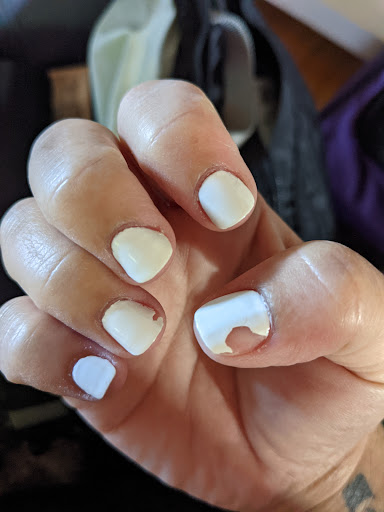 If you're looking for a manicure that will look good for a long time, this is not the place to go. I got a regular manicure (because my esthetician couldn't do the bee design I wanted) on Saturday, and by the end of Sunday, my nails looked like...
