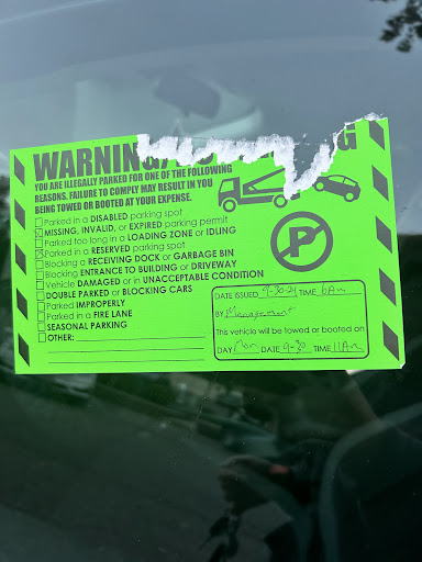 Learning from that experience, I decided to shop earlier in the morning to avoid any more issues. A few days later, around 6 a.m., I parked briefly to unload groceries. When I returned to my car just 20 minutes later, I found a giant, neon sticker plastered on my driver’s side window, threatening to tow my vehicle. This was a bold and over-the-top response for a Monday morning at 6 a.m., especially since I wasn’t obstructing anything at that hour.