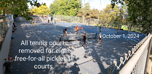 Gotta love pickleball. It's a sport anyone can play, and can usually play competitively with just about anyone. The people are generally very nice, cool and relaxed while still being very focused on the game when present. Courts here are much better now that they have been repaved and the weather is nice again. Only downstairs are that there's already damage in spots on the courts and also sometimes accumulated leaves or water. And it seems to get very crowded at times-sometimes I've passed by in the evenings thinking maybe play for a minute only to see full courts and large waiting crowds, more day send like a good time to play, later afternoon it can be empty tho there sometimes are reservations then. I'm thinking of going all in on this hobby of mine, pickleball, try to start playing and practicing on a more regular basis, hopefully improve game play and whatnot, maybe coach pine day in the future who knows. This was rambley, but meant to be an enthusiastic review, 5 stars and whatnot... Big fan of pickleball, good...