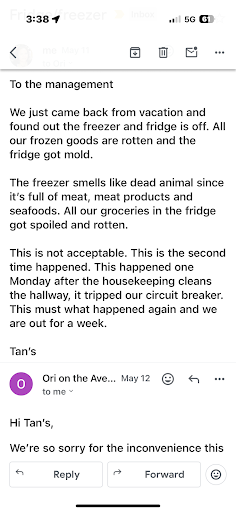 Read moreIt’s been a week of asking them to address our problem but no one cares. No one answer the phone you call, no one site manager, they only reply on email but don’t address your concern. The fridge was off because of circuit broke when we were gone for a week. Our unit stinks because of rotten meat products and spoiled food, we lost hundreds worth of groceries. We keep reporting and asking if they can change the whole fridge unit it’s unusable. The unit is emitting bad smell and it’s a respiratory hazard. Until now they have not responded, I am almost to the point of reporting this to the city of Seattle...