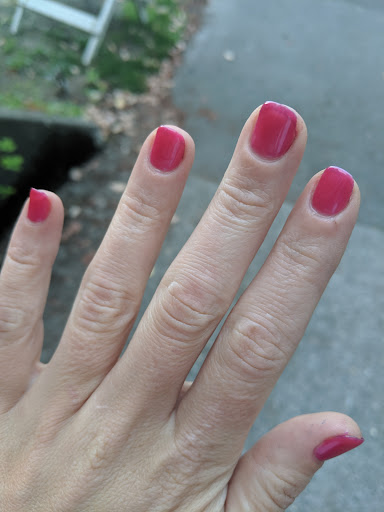 Downsides, it was only two thin coats and took an hour and a half. Got home and realized that they sanded down my nails so much that they are bendy and fragile. After my shower one nail frayed and the polish chipped almost completely off.