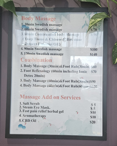 Ā Ā Ā Read moreI bought a one hour foot reflexology session while my wife got the back and foot massage. Mine cost $40 and wasnāt all that great. The guy did some shoulder and arm work then did a foot massage which was very repetitive. My wife enjoyed her massage. When we went to pay, they total shouldāve been $90, but they charged $92. Not a huge deal, but then I added a suitable tip which they were less than pleased with. They tossed the card back at me and we left. We...