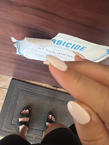 Read moreWent to ST nails two months ago for a mani-pedi. A woman did my mani. It lasted less than a week. The young guy who did my pedi forgot (or didnt care) to put the moisture treatment on one of my legs. And they charged way more than other salons i've gobe to. While the pedi turned out so-so in the end, after taking off the polish 3 weeks later i noticed both of my big toes had weird markings on them. I ignored them at first thinking they were just scrape marks from the guy attempting to remove my old shellacked color. But after another few weeks i see they are getting worse and i have a slight tenderness on one of my toes. So now i believe i may have a fungal infection which i have never had in my life!!! I dont know if he scraped too deep or used unclean tools. Either way, DO...