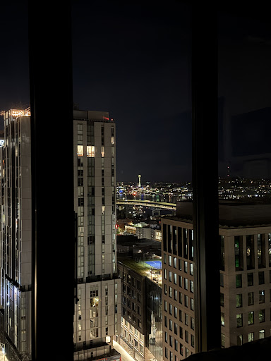 The Pros: The ammeneties are excellent. Pre furnished rooms feel new. There are very small areas that could be cleaned like fan grates in the bathroom. The TV's in each room, and the wi-fi are great. The first generation of foam beds are softer and easier to sleep on vs the spring beds in my opinion. The basketball court is a great attraction, and can reasonably fit 3 on 3 and no more than that. I wish it had a large wood floor broom/dust mop on hand for residence to use but I can see why they wouldn't allow that. The upstairs lounge and study area are extremely polished and luxurious. They are clean and well kept. The upstairs microwave doesn't have a rotating pan but it heats well. The printing is straightforward and reserving the study rooms and movie room is easy. The Pool table in the movie room isn't level. The TV in the movie room is huge for a home but small for the room, I would have thought to use a projector. But it is a beautiful space that other apartments wouldn't have nonetheless. The movie room does suffer from having multiple people use the bathroom even if they don't reserve the room. It is annoying. The gym is excellent for the small space it takes up. The machines are all in good condition. The folding benches have even been replaced with wear. There are no 25lb dumbells. But they have 2.5lbs up to 80lbs. It could reasonably have 10 people in it, 4 on weights, 4 on cardio machines. The side choreo room has medicine balls, one set of ropes, weighted bags, and a punching bag. There are yoga mats as well. There are 2 TV's in the main gym and a TV in the choreo room. The only part of the gym I wish it had with the space given is a dip bar. The maintenence staff are quick to fix requests. The views out of windows on the 24th floor are very beautiful in all directions. All of the shared ammeneties are very popular, so it can be difficult to enjoy them in peace if that's what you prefer. Finding times that work for you can help. I stress that these are shared luxuries. If you're lifestyle fits with sharing sometimes, the very high rent can be worth it!