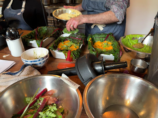 I have taken cooking classes in various areas and at various companies and they are all a little bit different. This one is more collaborative where you work on one large dish per course with most of the team and all eat together I have taken others were each small group of whoever you came with makes their own three courses. It kind of depends on your personal style and how busy and involved you like to be which one you would prefer. This class is pretty slow, paced and relaxing and you get to enjoy wine while you were cooking.