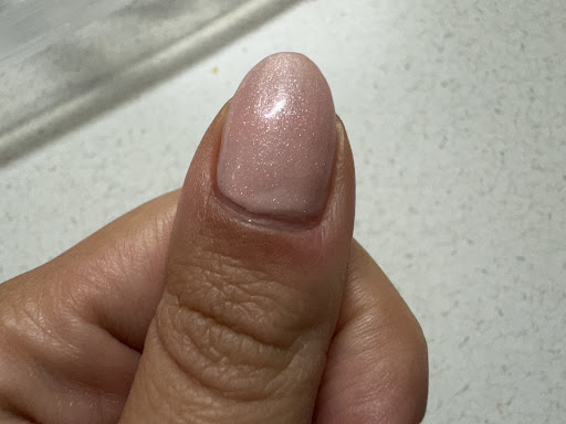 The quality of applying the gel color is pretty poor. It looks bumpy, the color is uneven and see-through, and there’s a huge gap between the gel and my cuticles. Cuticles should be cleaned more thoroughly, and the gel should be applied closer to the cuticles so the gap is closed for at least a couple of weeks, making the mani last longer.