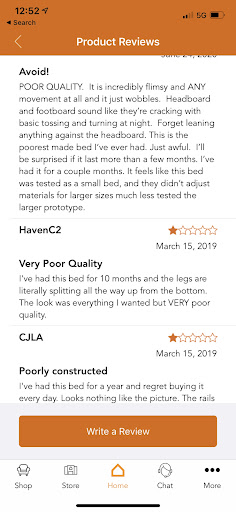 I left a review through Ashley furniture as well, and haven't heard back. Apparently they don't care after a sale is made which is disheartening after spending around $6000. We still need to furnish other parts of our place, but definitely not going back...