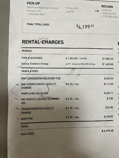 So lessons learned check your rental can be returned if you're not flying back out of Baltimore. Even though it says they have cars online they might not have cars there.