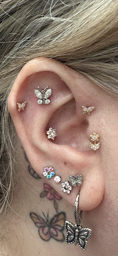 Most recently I was assisted by Alayna, Shelby and Amber. Those ladies were so helpful in showing me various pieces and making recommendations as to what would look best. They also answered all of my questions and addressed my concerns. For example, I was worried a conch piercing would interfere with wearing earbuds. They assured me it would be fine, and I admit I was a bit skeptical, but they were right. Thank goodness because I can’t give up listening to music!