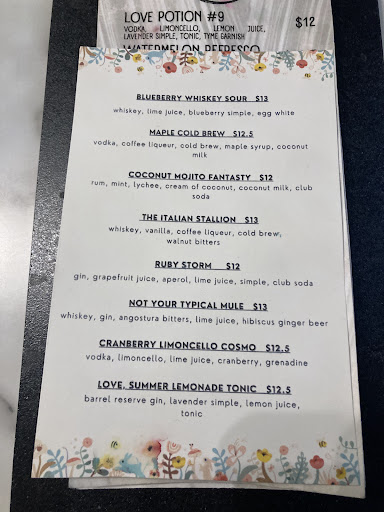 Read moreI was very excited to try this place on my journey to check out new local spots. We came in, and there was limited seating available. We sat for a while without being waited on. I went up to the bar in the hopes of getting waited on. I was completely ignored even though the girl saw me. I went back to our table, and another table had to send one of the girls over once they got their drinks. I do realize they were busy. However, we finally got our drinks 25 minutes into sitting down. The other girl that brought our drinks over was very sweet and kind. I will say that the drinks are very good. Quality ingredients, and delicious. I'm just very disappointed in the service. The acoustics are very loud. Everyone's voice carries very loudly in the space, and they had no music to lighten the ambiance of that. There was just a very chaotic and loud presence in the bar along with intoxicated patrons. For 2 drinks, it was over 30 dollars, and it was not a memorable experience. I may try to give them another try. However,it won't be anytime soon. I hope that their service and atmosphere can meet with the quality of...