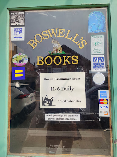 Read moreBoswell is the store's mascot kitty which drew us in, but we quickly realized this place was a gem. Something about it makes you want to stay till closing and visit daily. The charming and knowledgeable sales lady (unsure if she was owner or employee) turned us on to so many books and ideas it was hard to leave. Plus, the prices are great. Tho we live out of state, we plan to buy all books from her...