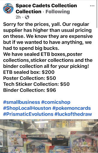 Iāve been coming here since January 2024 when I started my journey into comics. I went to several LCS within reasonable driving distance from Conroe to Willowbrook and Space Cadets by far had the most variety. But that wasnāt the only thing that made me chose them as my go to LCS, itās the employees and the vibe! Iāve never had a bad experience here, everyone is nice they try to help even if what you are asking isnāt something they may be familiar with.