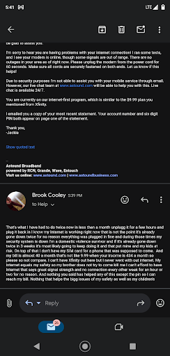 Read moreI canceled my internet on May 4th and the person I spoke to was condescending and I could hear him slapped his hands on his desk along with the syllables of his words. I wanted to make sure I understood what he was saying as far as me not receiving an other bill for the next month, but apparently he didn't have time for that. All calls are on a recorded line, why would someone be rude like that to their customers. He asked if I could return the equipment myself and I said yes, however, he did not tell me that he then set the cancelation date for a technician to come out to cancel the line outside of my home, for the 23rd. I was not aware that a technician was needed if i could return the equipment myself. I was not using the internet and it was completely unplugged for a couple days before I called to cancel because I was using a different internet provider after they raised my bill by $26 without any notice or explanation. I received a full month's bill today, so I called the customer service line, twice, to get information on the situation. The first person I talked to only told me that my account wasn't canceled but in a pending status and to call back again tomorrow. I called back a few minutes later and the person I spoke with actually helped me. She was polite and very pleasant. She looked into it and told me about the 23rd, and that she does see that the equipment was returned. She rescheduled the technician appointment for the soonest possible date, which is tomorrow. She then said she added in notes about how my account was supposed to be canceled on the 4th and we had talked about. She told me to call back after the technician had disconnected the internet service and then the bill will be able to be sorted out and corrected to show that it was supposed to be canceled on the 4th. I would have canceled it on the 3rd before the new billing cycle but it was a Sunday and they are closed according to Google. So I appreciate the 3rd person I spoke with because she took the time to find out what was happening and make sure I understood it along with what to do next. The other customer service representatives were not helpful with full details and or out right rude. There is no way that I would ever return to Astound Broadband by Wave (previously known as Wave) again. I may have later on if it met my needs but not anymore. If their customer service representatives won't take the time to help their customers then why would I want...