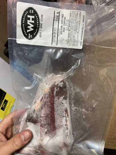 Bought a half a cow from the Sadler ranch out of Casper, first time with this outfit, and they used western heritage to process, also a first. Was told my half weighed exactly 300# hanging weight, which I found strange. Sadler family picked up beef and brought it to town, without doing inventory. All of the brats, jerky etc were missing. When I opened the boxes and saw the sizes of the tritip, the steaks (less than half a pound) prime, and brisket (2 poundsish) I could clearly see that this half was not 300 pound hanging weight (1000# live weight calf). This facility bills by the pound, as does the ranch, so by fabricating heavier numbers, both the meat processor and ranch make more money for services and product they didn’t actually provide. Cons, do not use these crooks. I’ve also added a photo of a steak from a 311# hanging weight half beef I bought...