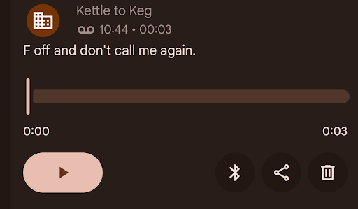 I almost immediately received a call back, which I missed, and received the message displayed in the picture. I listened and verified that the voice to text translation was correct.