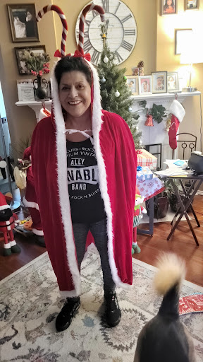 I bought a santa cape and some horns that I wore to deliver gifts to...