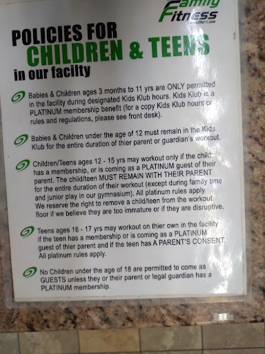 My issue is with the owner, we got our platinum membership after asking about the minimum age requirement of using the workout floor multiple times. We were told by multiple staff members that the minimum age was 13. Perfect!