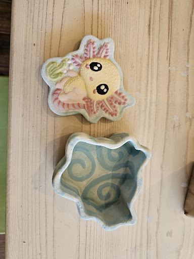 We absolutely loved coming here and had a blast creating our pieces of art, it has a wonderful atmosphere to just paint and have a good time. The only reason I am giving it two stars is because of the staff. We decided to try out pickles and pottery for date night, It was our first time there and we were absolutely clueless. We stood there awkwardly waiting for a staff member to greet us, and even after being acknowledged by a staff she still let us wait a few minutes before being asked if we had ever been there before, we told her no and she continued to explain what to do, wash hands then pick a pottery piece that we wanted to paint. She did not explain anything at all when it came to painting, only told us we needed to pick paint from the options in the frame and only came back to refill. Never asked if we needed any help or anything specific to better our art pieces with her being aware that we were new and knew nothing about painting. When we asked her about utensils or stamps to use she said “yeah just grab whatever you need” as if we knew where things where and what to grab. I would love to recommend this place to friends and family but due to the rude staff I will not recommend this...