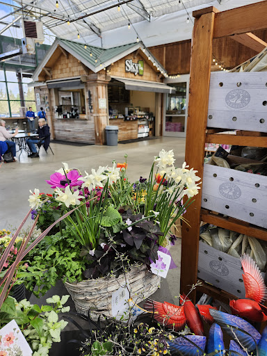 An unusual spot came up when I Googled "Coffee near me". I am on a quest to find a new coffee shop where I can have a tasty mug, people watch and work. At the top of the results from Google was Sky Nursery. It's been a long cold winter and I have not felt the need for plants in a while. With traces of the warmth of Spring in the forecast, I decided to pack up my computer and check it out. It's a short walk for me down the Interurban trail. Most of the time I have to dodge cars pulling into the giant parking lot. This time I went with the flow and turned in. The coffee served from a cute wooden shed out in the greenhouse area. There are a few tables by the window that are warmed by powerful heaters overhead. I ordered a latte from a nice woman with blue hair, then set up my computer on one of the tables. There is wifi, but no power outlets. Good thing my battery was fully charged. There were a couple of other groups at other tables, but they were not so busy that I had to wait too long for my latte. I like a big ceramic mug with foam art, but that is not what they do there. I got the usual paper cup with a plastic lid. Not a deal breaker and the coffee was tasty. I got a cool idea for a short story, so the next hour was focused on my writing. When I finished up, my 20 oz cup was empty. I packed up, threw away the empty cup and started a tour of the nursery. The shelves in the greenhouse area were full of flowers, vegetables and decorative plants. They all looked healthy and triggered many ideas for the garden this year. There was also a wide variety of pots, planters and trellises. Unfortunately, the prices for these items are way out of my budget. On the way to the outdoor plant area, there is a wall of whimsical statues. Again, the prices were outrageous. I'm not a big fan of garden statues anyway, so I passed them by. In the outdoor area there is an information booth where a nice older man waited to field questions. I asked a few questions about roses, mostly because he was being ignored by the rest of the customers. I have a spot that I want to use for roses and he gave me some good ideas. I looked around for the bulk items like potting soil, bark, mulch, fertilizer, etc. Instead of a stack of big bags, there is a shelving unit with samples where you can order what you want. Cute. Inside the building are all the usual things you would expect - seeds, chemicals, tools, and more decorations. It was fun browsing. Prices are high, but everything seems to be high quality. Time to get to work...