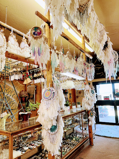 Walked in and saw a kitschy inauthentic yet fun retro totem pole. Started to take photo but a scowling employee shouted at me “ you want to read the sign on the door?” He could’ve just said sir no photos please or something to that effect. There were about eight signs on the door. I mentioned to him that I didn’t have time to read a novel and he could just ask politely. He spent the remainder of our time in the store scowling and never offered a word of greeting or asked if he could be of help. I have a pretty thorough knowledge of Native American art as well as tribal, Eastern and Western art in general. The shop was filled with low-quality items from Indonesia, (masks, etc.)Chinese fake Native American beadwork. Suspiciously Fake looking jewelry that said Navajo made but if it was it wasn’t made by craftspeople or artisans (necklaces). The rings didn’t carry the telltale design elements that one familiar with SW art recognizes but looked like Silver and turquoise rings from India. There were drums that looked nice but upon close inspection had holes and major flaws. There were the cheap pottery wheel pots that are technically “ Native made” but are just crappy pots made on machine wheels and repeatedly painted with crappy designs by unskilled workers. It looked like he did have some decent pots mixed in. They are supposed to be a “trading post” so when you see that coupled with the fact that they are near a major Reservation one would expect to find Shoshone and Bannok beadwork and other handiwork but instead 2 dollar rosettes from China were sold. There were Kachinas but none were Hopi Kachinas. Crystals were on offer though far more expensive than those across the street. All in all a complete waste or anyone wanting to visit a trading post (usually means high quality Native art on offer) crappy products (if not fake) and horrible employees (or was he the owner)....