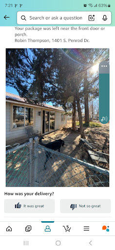 Ā Ā Ā Read moreReceived email notice at 6:3 5 pm Friday that monthly Subscribe and Save consisting of 4 boxes was delivered to front door or porch. Nothing on porch nor front door; nothing showing on exterior camera. Checked exterior of front of house....no packages. As I was leaving at 12:30pm the next day, I found a 4 boxes stac/ked just inside open chain link gate, 6 feet from a public street!! This is NOT the front door or porch, which was approx. 40 feet further up the drive. I am 78 yrs old and partially disabled so was only able to get 3 of the boxes up to the house. One weighing about 40 lbs is still sitting out by the street waiting for my son in law to come bring it up to the house. This is the first time Amazon has dumped and run......completely...