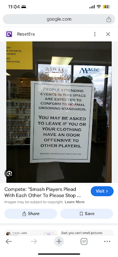 Read moreMy friends and I seriously love coming here especially for the MTG events but I’m at a point I want to stop coming not because of the staff but the clientele it’s self. I’ve gone to other card shops that have a rule that players coming to events are expected to adhere to normal hygiene standards and if they have an offensive odor they’ll be asked to leave. Kinda how bars stop sales if the person is too drunk or reeks of alcohol. Here’s an example I saw someone show online but yeah great place just wish the community didn’t deter me and my friends from coming anymore. I just wished the staff could step in and set a boundary or standard for the obstructive players they serve cause I don’t wanna have to show up with a ventilator mask just to play a...