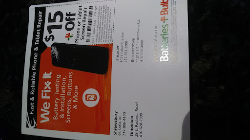 Read moreHi, I recently had to replace my key fob for Honda Accord. I was told by others that this was expensive and I would have to go to the dealer. The dealer quoted $200.00 plus tax. Then my husband found out about Batteries Plus Bulbs in Shrewsbury Pa. I went there to check it out. They were able to cut and program a new key for my car at much better price then the dealer. Everything works great. The staff was very helpful, polite and worked hard to get the job accomplished. They also have every kind of battery and light bulbs you can imagine, for your home and vehicles, and do repairs to cell phones, ipads and laptops and have all kinds of chargers and batteries for these as well. So nice to not have to drive to York for these services. Would highly recommend...
