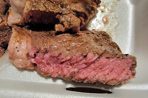 Now the bad, the waitress (anna) seemed like she had better things to do, didnt bring any of the essentials for the table or dishes and had an attitude for everything that was asked for. The aforementioned steak was terrible seasoned-- i mean if you arent going to season it decently dont season it at all the meat itself, is a seasoning. The sides were all bad, they literally dont even have mashed potatoes... a steakhouse.. The mushroom gravy was canned. The rack O ribs was drenched in bbq sauce, (to the cook & owner-- meat has its own flavor, dont mask it.) And overcooked. A party of 2 paid 57$ I could have spent less and ate better just going to walmart. Wasnt even worth the convience.