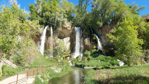 Read moreThis is a busy tourist/picnic attraction, the parking was full when we arrived, we returned 45 minutes later and got into park to see the falls. The amount of people was good though any more and it would have felt crowded. I thought the falls were going to be bigger, not really worth an hours travel. The caves were cute caves. Also, a good place to bring young children, parking is .1 miles great for non hikers!(Elderly folks!).The state park beyond the falls, beautiful canyon with rock climbers was almost as interesting as the falls. Good escape from the heat of I-70 corridor during the summer. The water is very clean rushing from the falls, smelled like a waterfall, that was the best part, the energy of falling water is special. The reservoir with many paddle boarders en route looked magical if your into that...