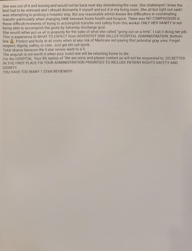 Thank you also to Dan and Jenny hopefully I got her name right down in the CT department. They were amazing and kind and a great comedy act. Especially what she had to do to me for my CT scan which is really disgusting. So thank you to the nurses staff, the assistance the doctors at Simi Valley Adventist Hospital. What team what love should be an example of how hospitals should treat Patients. Truly, first responders they are they are the superheroes that never get enough credit or accolades for what they do. God bless them. Thank...